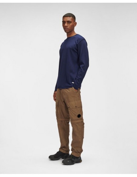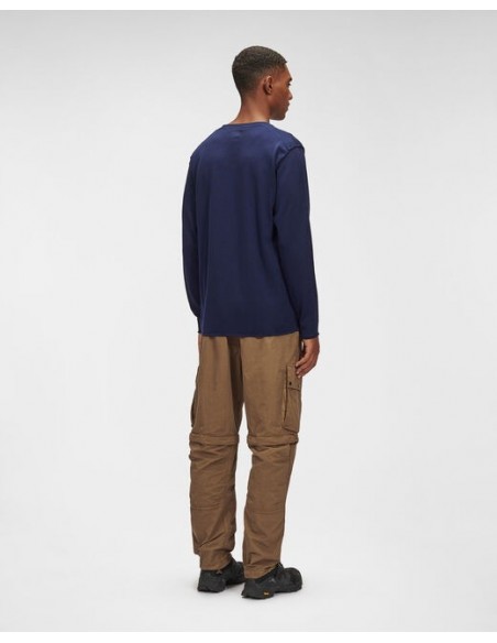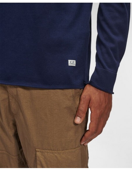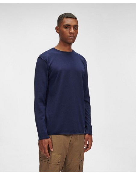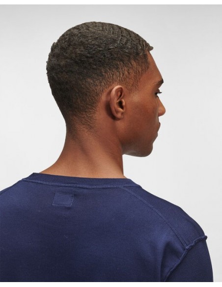 El básico que no puede faltar en ningún armario, este jersey de punto fino ha sido confeccionado cuidando hasta el más mínimo detalle. Diseñado con cuello redondo y acanalado, adornado con un detalle del logotipo de C.P. Company. Construcción elaborada con filoscozia, un hilo de algodón brillante mercerizado.