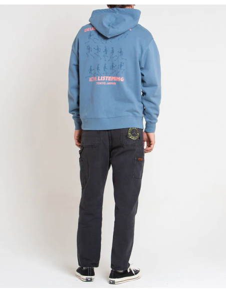 Este modelo esta diseñado en color azul con capucha y manga larga. Es una sudadera divertida con un simpático dibujo en la espalda y logo en el centro del pecho. Cuenta con tejido elástico en los puños y la cintura para un mayor ajuste.