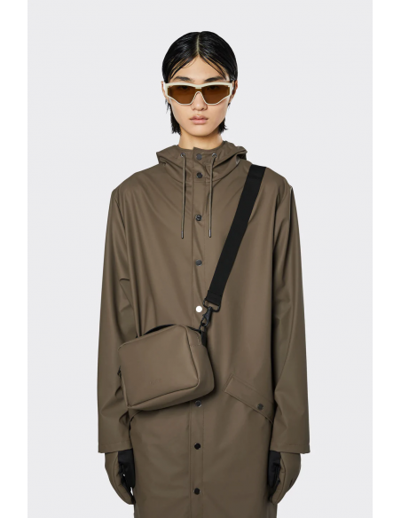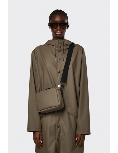 El Box Bag está confeccionado en PU impermeable, el tejido característico de Rains diseñado para ofrecer máxima resistencia y durabilidad, junto con un tacto suave.