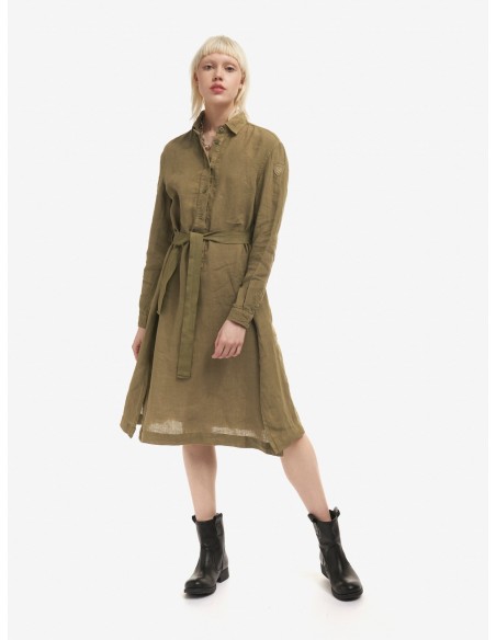 Vestido de 100 % lino teñido en la prenda con manga larga.