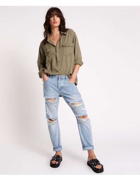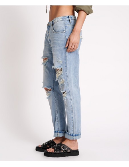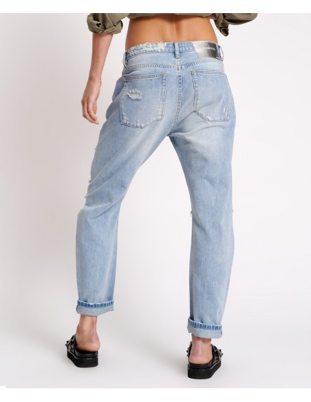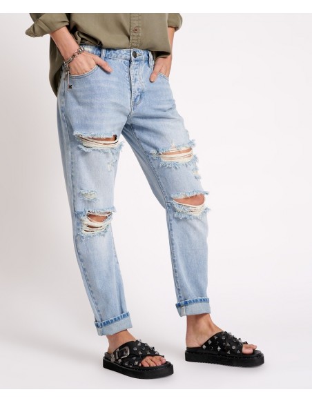 Presentamos "The LOW WAIST SAINTS", unos icónicos jeans que son parte de nuestra historia de moda, con casi 20 años de existencia. Son favoritos de estilo audaz, lucidos por celebridades como Gigi Hadid y Kendall Jenner. Estos jeans tienen una cintura baja característica, un ajuste relajado inspirado en el estilo tomboy, son ligeramente holgados y cortos, creando una apariencia sexy pero con un toque masculino. Son extremadamente rasgados y originales. Además, ofrecemos el popular lavado azul desgastado llamado "HENDRIXE".