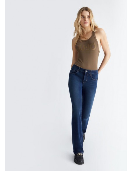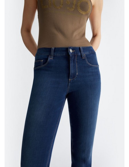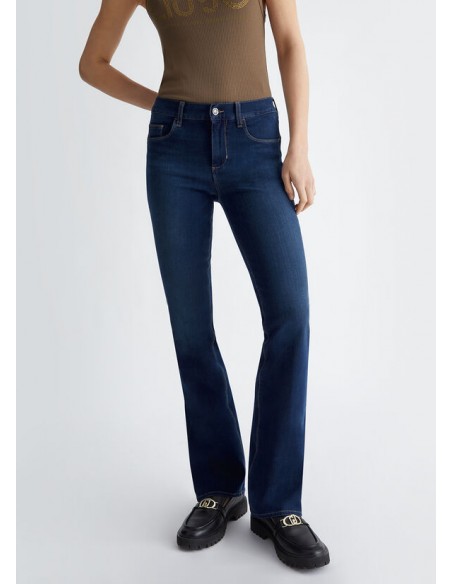 Vaqueros Bottom Up de denim en mezcla de algodón elástico, Lavado de efecto desgastado, Talle alto, Modelo cinco bolsillos, Pernera entallada que se ensancha en el bajo, Etiqueta con logotipo, Cierre con cremallera oculta y botón, Logotipo metálico en la parte trasera, Largo de pierna: 85 cm, Ancho del bajo: 21,5 cm.