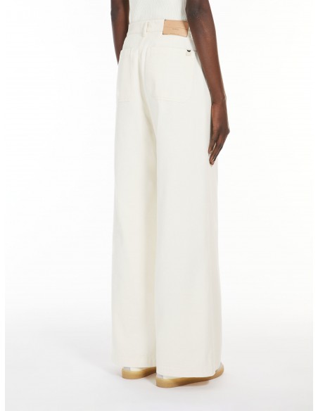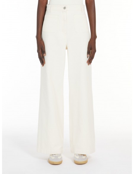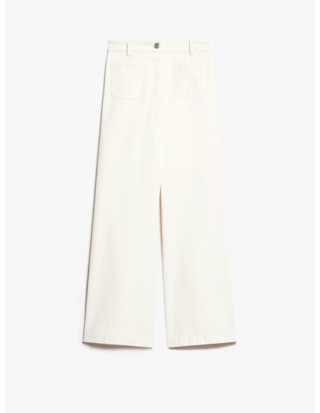 Pantalón de bull de puro algodón lavado en prenda, diseñado con una pernera ancha y un dobladillo vuelto en el bajo. Este modelo incluye bolsillos de parche en la parte delantera y trasera, con pespuntes a tono que aportan un toque distintivo. Rematado con trabillas en la cintura, el cierre delantero se realiza mediante una cremallera cubierta y un botón a presión, combinando estilo y comodidad en un solo diseño.