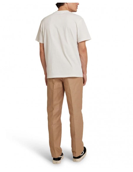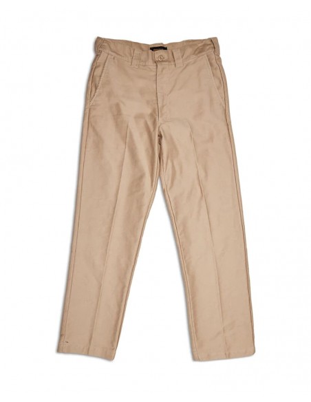 Pantalón de corte recto y ajuste regular, diseñado con un elegante pliegue central en la pernera que aporta un acabado sofisticado. Incluye bolsillos traseros tipo ojal para un estilo limpio y funcional, además de un cierre frontal con botón en la cintura y cremallera oculta.