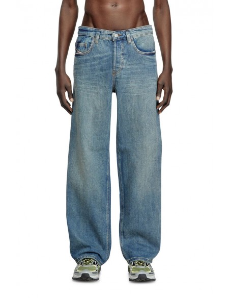 Los Relaxed Jeans 2001 D-Macro 0CLBB de Diesel presentan un corte relajado con cintura baja, tiro caído y pierna ancha, creando una silueta holgada y alargada perfecta para un look con actitud. Confeccionados en denim 100% algodón, parcialmente reciclado, estos vaqueros destacan por su tonalidad verde con lavado azul medio, realzado por detalles clásicos como los bigotes de gato y efectos desgastados que forman parte del ADN icónico de la marca. Incluyen bragueta con botón y costuras resistentes. Ideales para un estilo urbano y desenfadado.