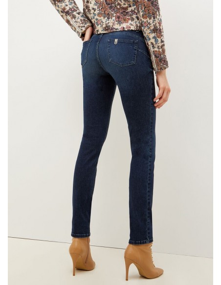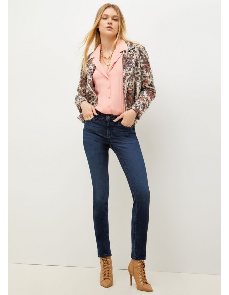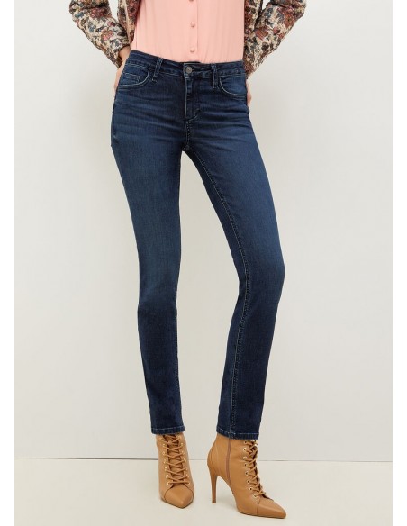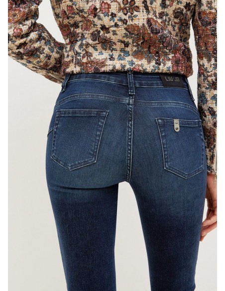 Vaqueros Bottom Up confeccionado en denim de algodón elástico que cuenta con un cierre de cremallera oculta y botón. Realizado en corte estándar con detalles ajustado en la pernera que es entallada para crear una forma perfecta en tu cuerpo. Tiene un lavado de efecto desgastado que le da unos toques muy desenfadados haciendo que puedas ponerlos con cualquier otra prenda.