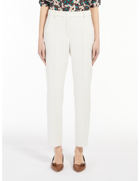 Pantalón confeccionado en mezcla viscosa de doble cara con un corte recto y clásico realizado en una tela bielástica con la raya planchada que crea una prenda muy elegante que pega con todo. El modelo presenta bolsillos al bies en los lados y bolsillos ribeteados con botón en la parte trasera. Cierre cubierto con cremallera y gancho.
