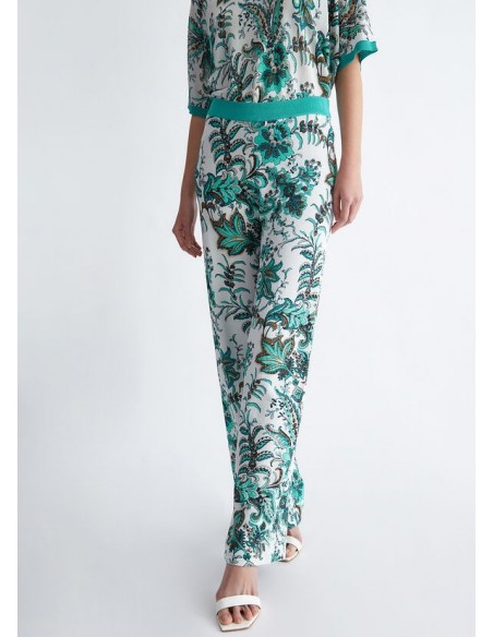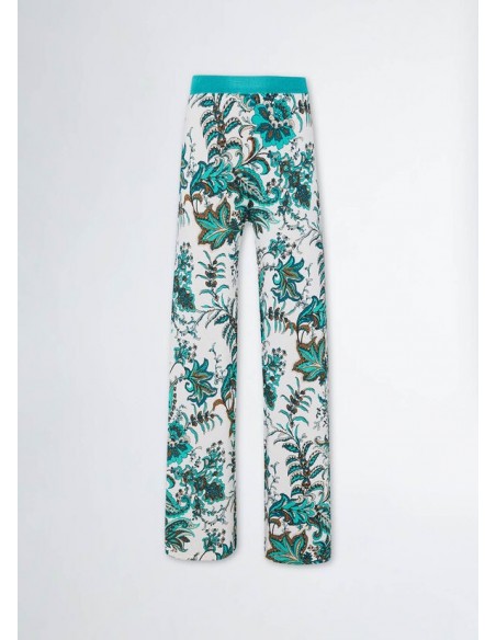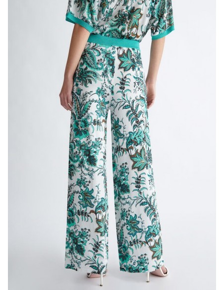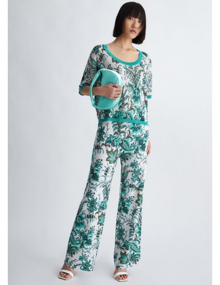 El pantalón con estampado de cachemira de la marca Liu Jo es una prenda elegante y sofisticada que seguramente atraerá todas las miradas. Confeccionado con materiales de alta calidad, este pantalón de corte largo presenta un hermoso patrón de cachemira en tonos cálidos y vibrantes que lo hace perfecto para cualquier ocasión.