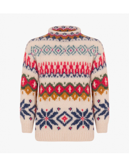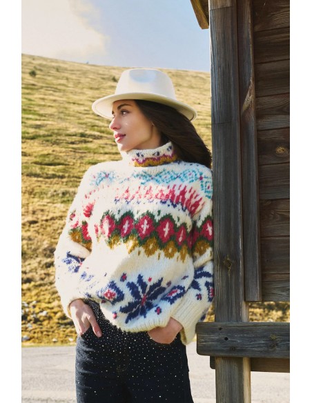 Perfecto para combinar con jeans, pantalones de lana o faldas largas, este pullover es una prenda atemporal y sostenible, que aporta estilo, calidez y autenticidad a tu armario de invierno.