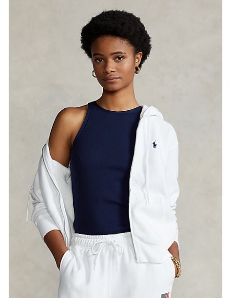 Este básico no puede faltar en tu armario para esta temporada, esta sudadera básica de tejido polar con capucha tiene un tacto suave y luce el caballo bordado iconico de la casa. Es perfecta para el frescor de una noche de verano.