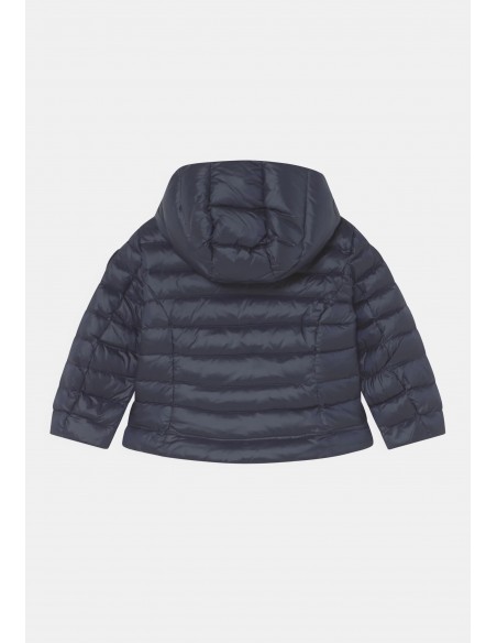 Este plumas de niño ha sido confeccionado en nailon microrip con ligero motivo de cuadros y capucha fija que cuenta con relleno Sorona® Aura creado a partir de una base vegetal, que le permite ser lavable e inodoro. Cómodo, cálido y mantiene la forma a lo largo del tiempo. Forro interior de la capucha de la prenda en contraste de color.