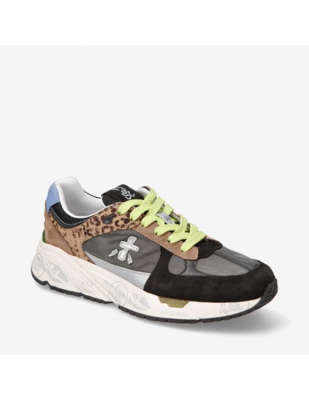 Las zapatillas Mase evocan el estilo de los años noventa, fusionando una silueta retro con materiales de alta calidad y detalles llamativos. Fieles al característico diseño de Premiata, mantienen sus elementos distintivos: el logotipo en los laterales, la inscripción "MASE" visible en la etiqueta, y los contrastes en los acabados que realzan su presencia.
