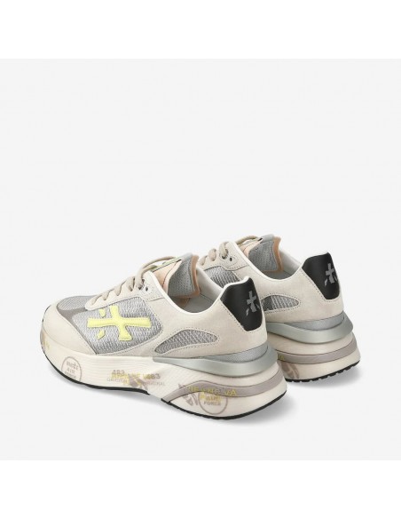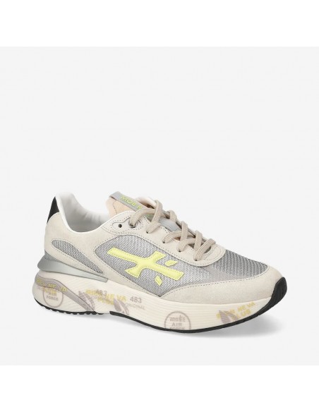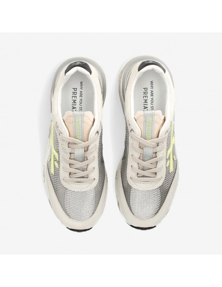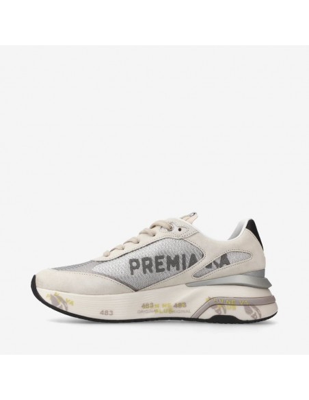 Descubre la innovación con la Moerun, diseñada para impresionar. Esta zapatilla se caracteriza por su ligereza en el movimiento, su estabilidad y la sensación amortiguante que proporciona su suela innovadora. La nueva silueta destaca por sus detalles únicos: el logo en el lateral exterior, la inscripción PREMIATA en el lateral interior y el nombre del modelo en la etiqueta.