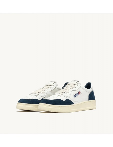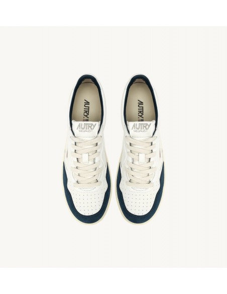 Las Medalist de Autry son el equilibrio perfecto entre estilo y comodidad. Confeccionadas en piel de cabra blanca y detalles de ante azul, estas zapatillas de perfil bajo destacan por su diseño artesanal y su tratamiento "stone milling finishing", que les da un aspecto único con pliegues y tonalidades naturales.