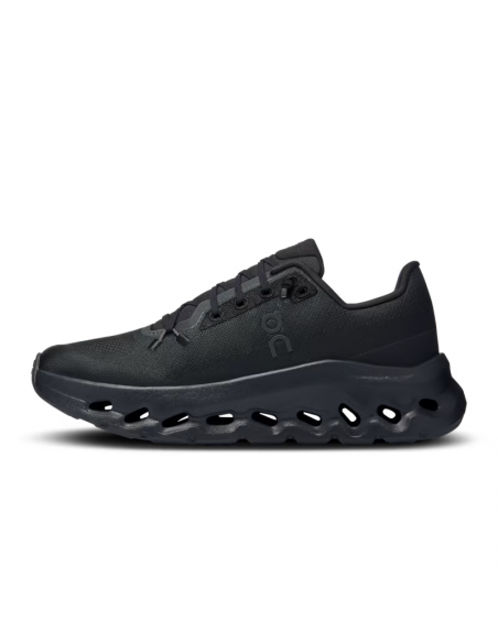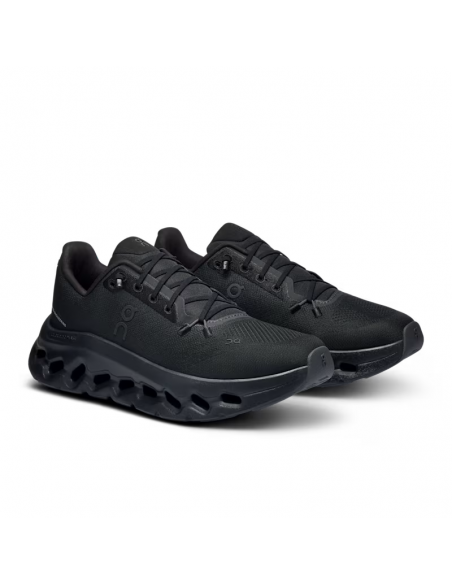 Las Cloudtilt Eclipse | Black de On Running combinan rendimiento urbano y diseño innovador. Ultraligeras (229 g) y con ajuste normal, incorporan la tecnología CloudTec Phase®, que optimiza la transferencia del peso y ofrece una amortiguación suave y dinámica. Su entresuela con superespuma Helion™ proporciona un excelente retorno de energía, mientras que los elementos Cloud alineados maximizan la comodidad en cada paso. El diseño incluye un cómodo interior tipo calcetín y cordones de atado rápido. Fabricadas con materiales 100% reciclados y teñido dope dye que reduce el consumo de agua en un 90%, estas zapatillas ofrecen estilo, sostenibilidad y precisión suiza para el ritmo de la ciudad.