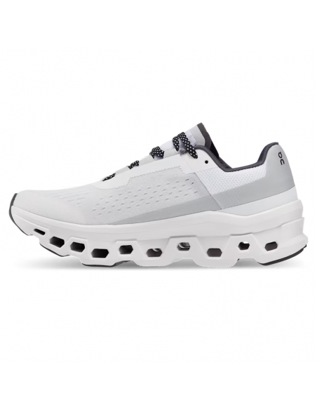 Las Cloudmonster All White de On Running ofrecen una experiencia de carrera explosiva gracias a su amortiguación CloudTec® y su diseño dinámico. Con un drop de 6 mm, estas zapatillas permiten una transición suave del talón a la puntera. Incorporan la superespuma Helion™ para absorber impactos y la Speedboard® para un retorno de energía ágil. Su upper suave y transpirable, fabricado con materiales reciclados (100% poliéster reciclado en las principales zonas), garantiza confort y sostenibilidad. Pesan solo 230 g y están diseñadas para resistir cualquier temperatura. El diseño rocker potencia el impulso hacia adelante, facilitando una carrera fluida y sin esfuerzo. Ajuste normal. Perfectas para runners que buscan amortiguación, ligereza y respuesta en cada zancada.
