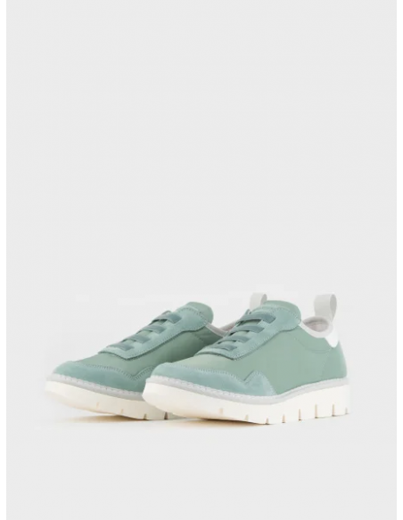 Sneakers Slip On P05 realizados con inspiración running y confeccionados en nailon agua, inserciones de ante tono sobre tono y cordones elásticos efecto brillante. El forro de estos playeros esta realizado microfibra lo que asegura la perfecta transpiración, además cuentan con plantilla antibacteriana de microfibra extraíble.