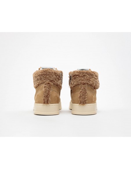Tiene un ribete y puntera de ante color biscotti con una lengüeta, tobillo y talón de piel sintética para una apariencia y sensación increíblemente acogedoras.