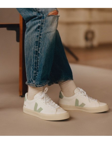 Este diseño de Veja es el más completo ya que esta fabricado en cuero bovino "ChromeFree" que asegura su suavidad y ligereza. Procedente de granjas situadas en el sur de Brasil (Rio Grande do Sul), se somete a un innovador proceso de curtido en el que no interviene el cromo, los metales pesados ni los ácidos peligrosos.