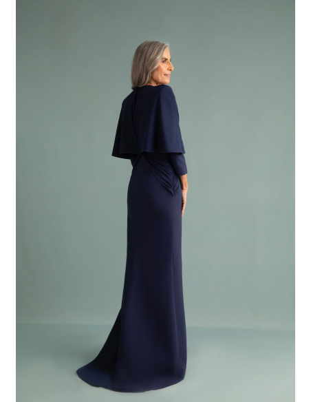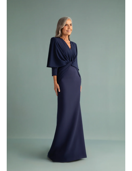 Disponible en un elegante color azul marino, este vestido es perfecto para eventos especiales, bodas o cualquier ocasión en la que quieras destacar con un look distinguido y atemporal.