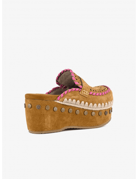 La estructura ligera incluye un soporte para el talón y una plantilla acolchada de ante, garantizando una comodidad superior durante todo el día. La altura del zueco es de 6,7 cm, ofreciendo la elevación justa sin sacrificar estabilidad ni confort.