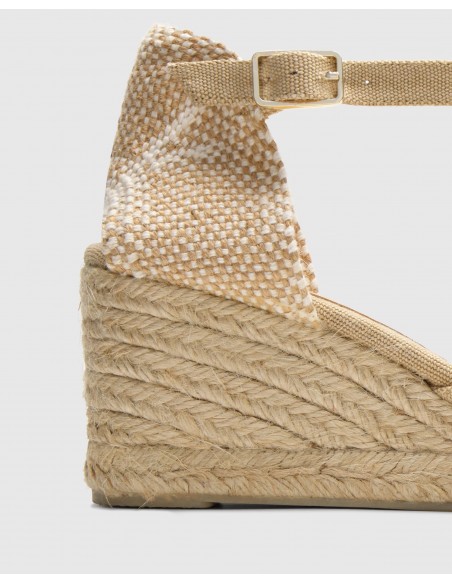 La Carol /6/001 es una de las alpargatas más emblemáticas de Castañer, marca con tradición desde 1927. Este modelo atemporal, confeccionado en algodón orgánico, se distingue por su elegancia veraniega y su cuidada confección artesanal.