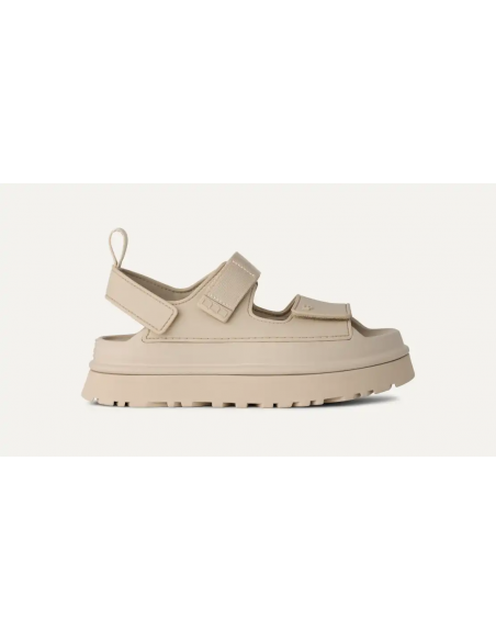 Si buscas unas sandalias que combinen estilo, comodidad y sostenibilidad, las Goldenglow de UGG son tu mejor opción para el verano. Con un diseño icónico y atrevido, este modelo ofrece un look moderno gracias a su plataforma elevada y suela acanalada, ideal para destacar en cualquier ocasión.